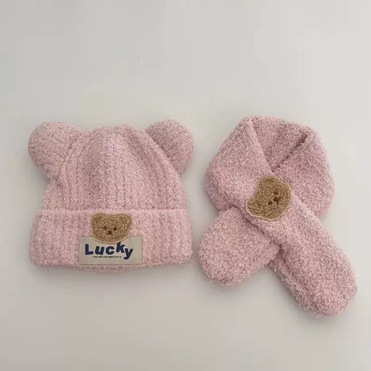 15分鐘前嬰兒帽子秋冬季可愛小熊寶寶毛絨護耳帽圍巾套裝保暖男女童套頭帽 - 商家推薦95%客戶選擇2入組NT$1199
