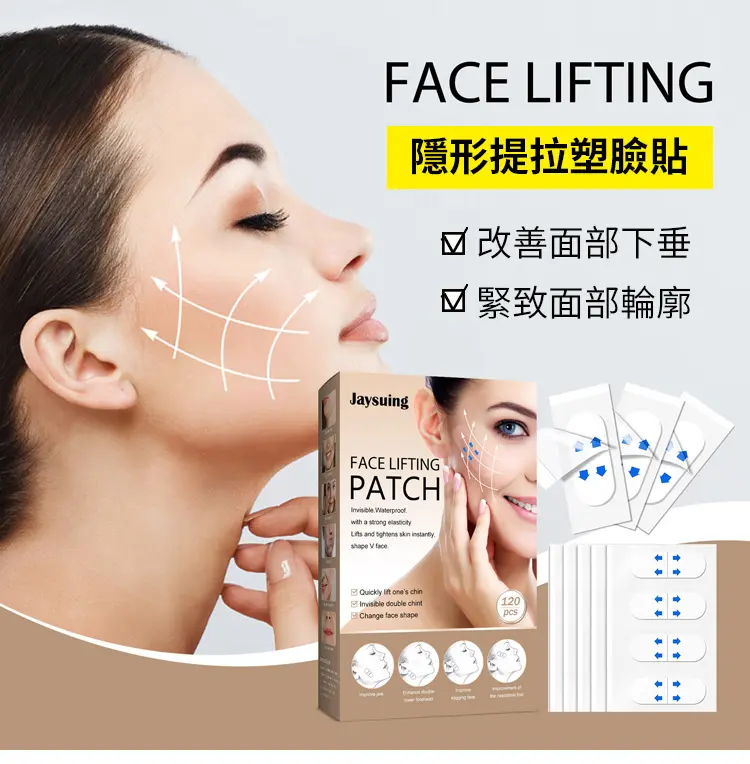 5分鐘前面部提拉瘦臉貼 提拉緊緻,快速擁有小V臉,美美噠超隱形,真的好好看 - 【體驗組】一盒(120貼) 免運費-NT$950