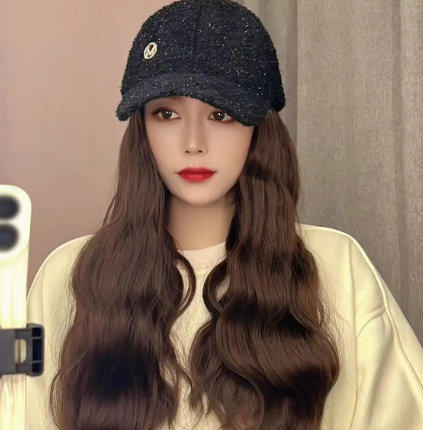 12分鐘前最新款氣質格紋盆帽假髮 帽子和假髮二合一,優雅又時尚 - NT$1559三入組
