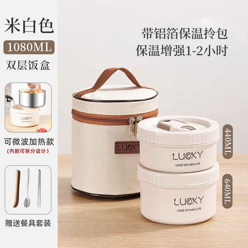 11分鐘前日式便攜保溫飯盒送餐具套餐 - 可微波【兩個裝】+勺筷+保溫提包NT$1060