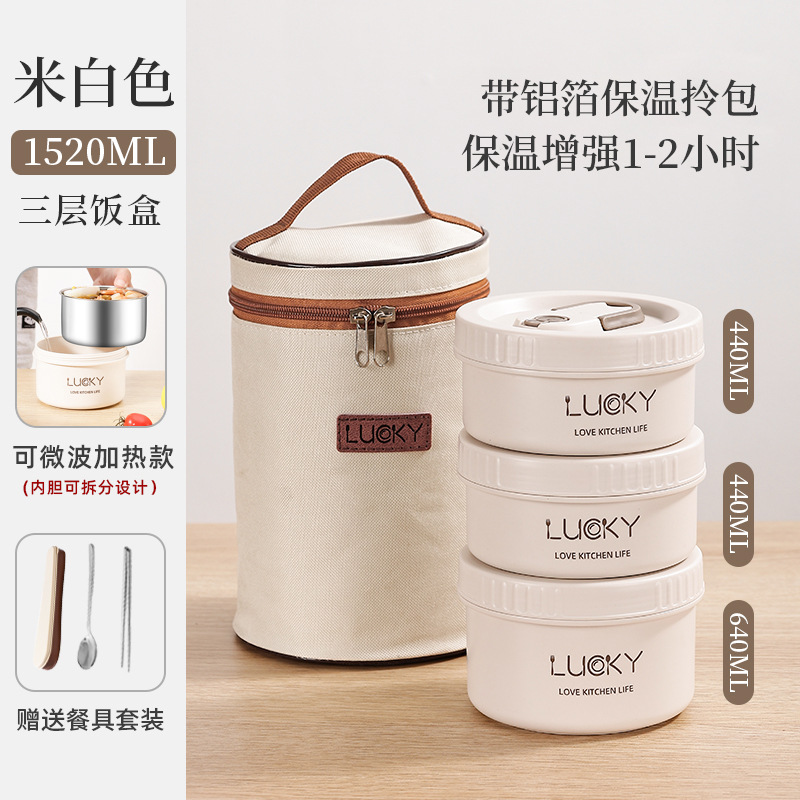 5分鐘前日式便攜保溫飯盒送餐具套餐 - 可微波【三個裝】+勺筷+保溫提包NT$1260