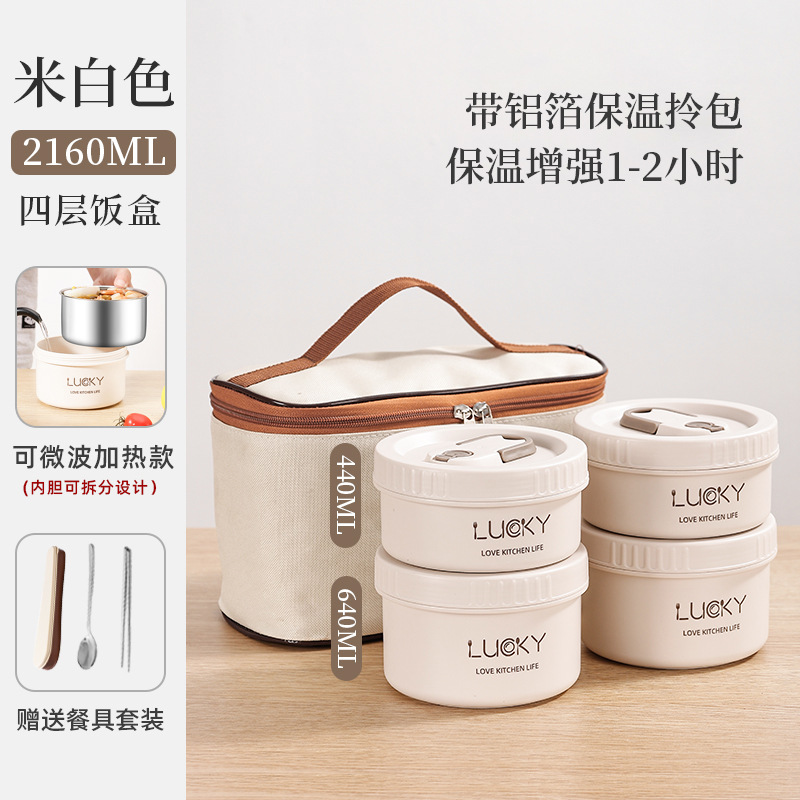 2分鐘前日式便攜保溫飯盒送餐具套餐 - 可微波【四個裝】+勺筷+保溫提包NT$1660