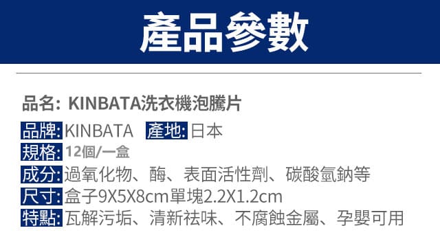 20分鐘前【日本進口】去污清潔泡騰片,適合清潔洗衣機水槽馬桶多種用途!無效全額退款, 固保三年! - 日本KINBATA洗衣機泡騰片 入10組100個 NT$1499