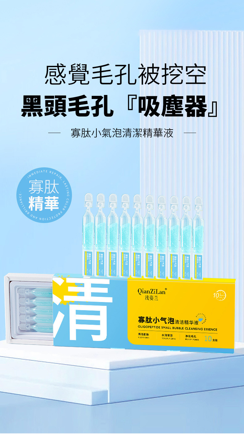 7分鐘前【三分鐘黑頭粉刺自動浮出】寡肽小氣泡清潔精華露 發泡清潔毛孔 去黑頭粉刺 收縮細嫩毛孔 - 體驗組【一盒 10隻】-NT$998