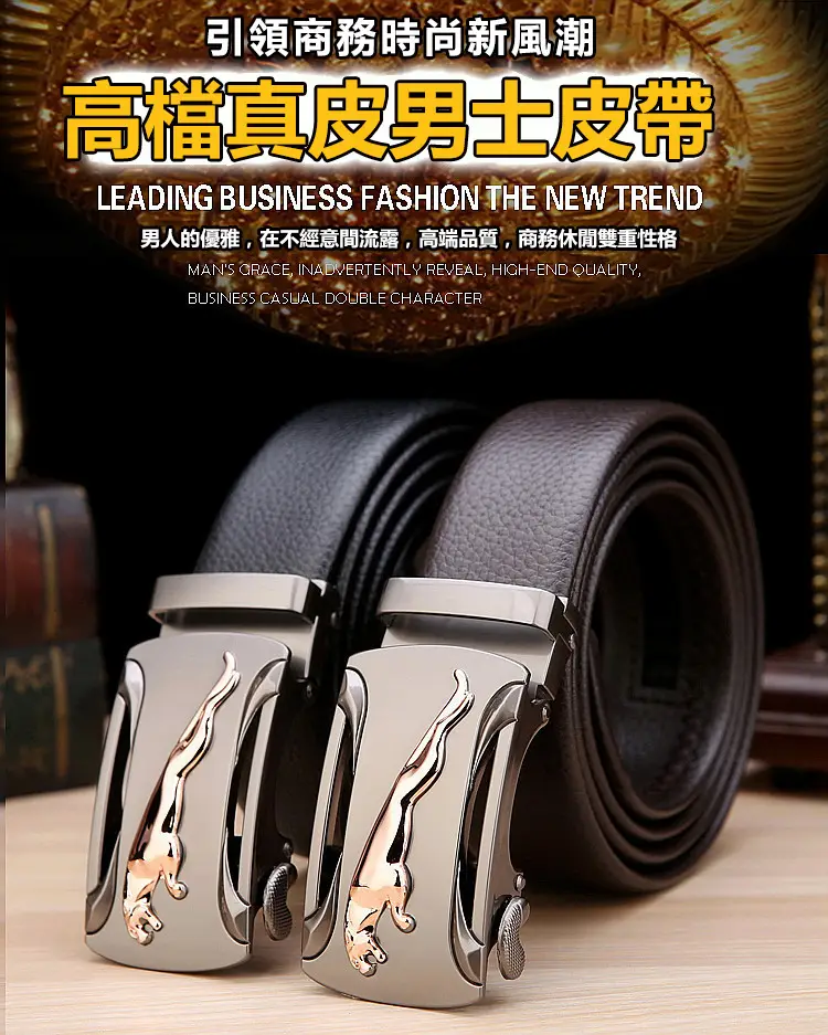 4分鐘前【官方站】男士獵豹自動扣真皮腰帶 【能用十年的真皮腰帶】 整張牛皮裁剪打造,純手工製作,耐磨耐折耐用,品質高端,彰顯男士成熟魅力