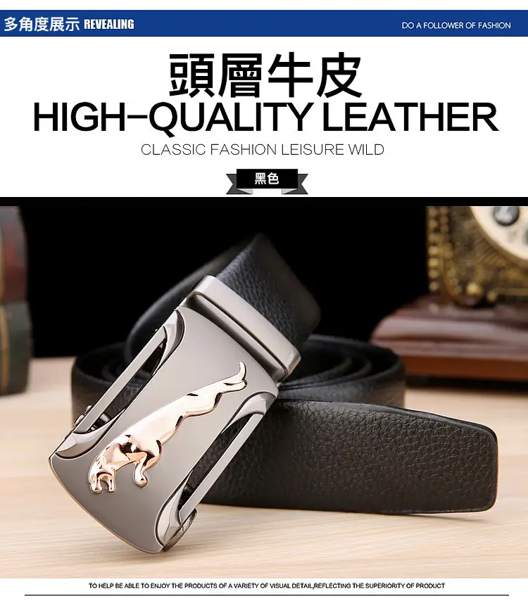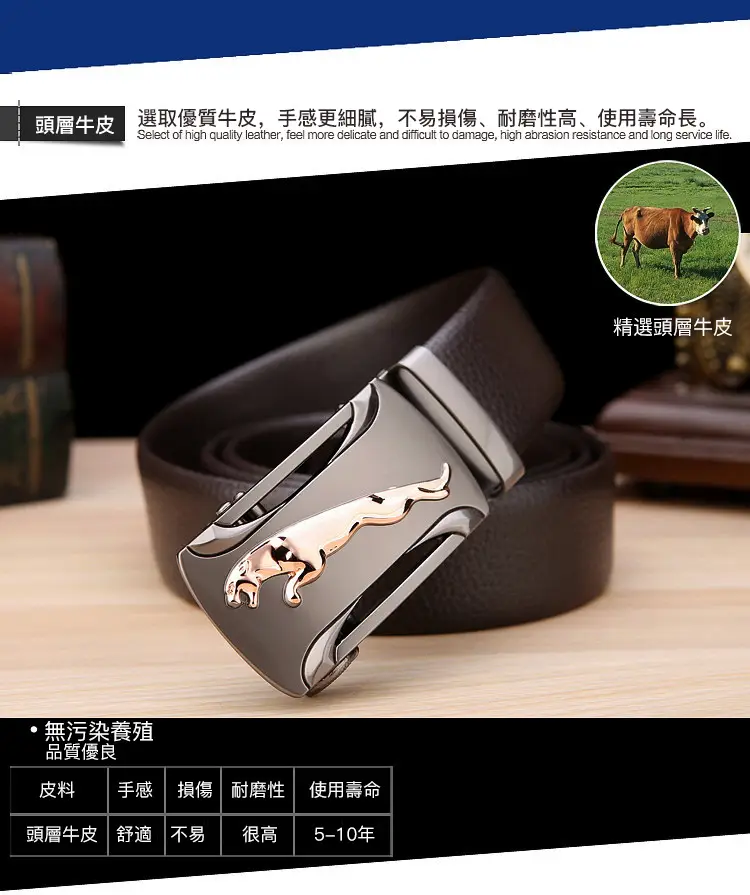 15分鐘前【官方站】男士獵豹自動扣真皮腰帶 【能用十年的真皮腰帶】 整張牛皮裁剪打造,純手工製作,耐磨耐折耐用,品質高端,彰顯男士成熟魅力
