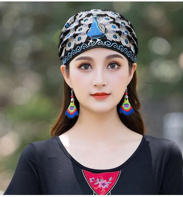 25分鐘前繡花頭巾頭箍刺繡發帽鬆緊發帶發飾孔雀套頭帽 天然棉麻材質,親膚透氣,不悶汗不壓抑,後面開口設計,紮馬尾也可方便佩戴 - 【尊享三入】3件僅售NT$1299,均價433/件