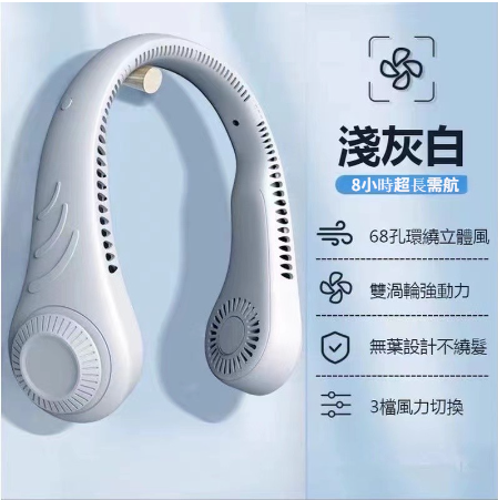 2分鐘前【24小時連續使用超長續航】#掛脖風扇 #3檔自由調節長續航 免運費 貨到付款 - 【白色-無葉設計不饒發】