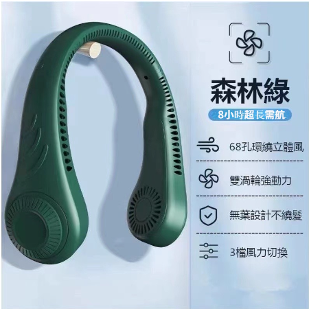 4分鐘前【24小時連續使用超長續航】#掛脖風扇 #3檔自由調節長續航 免運費 貨到付款 - 【綠色-無葉設計不饒發】