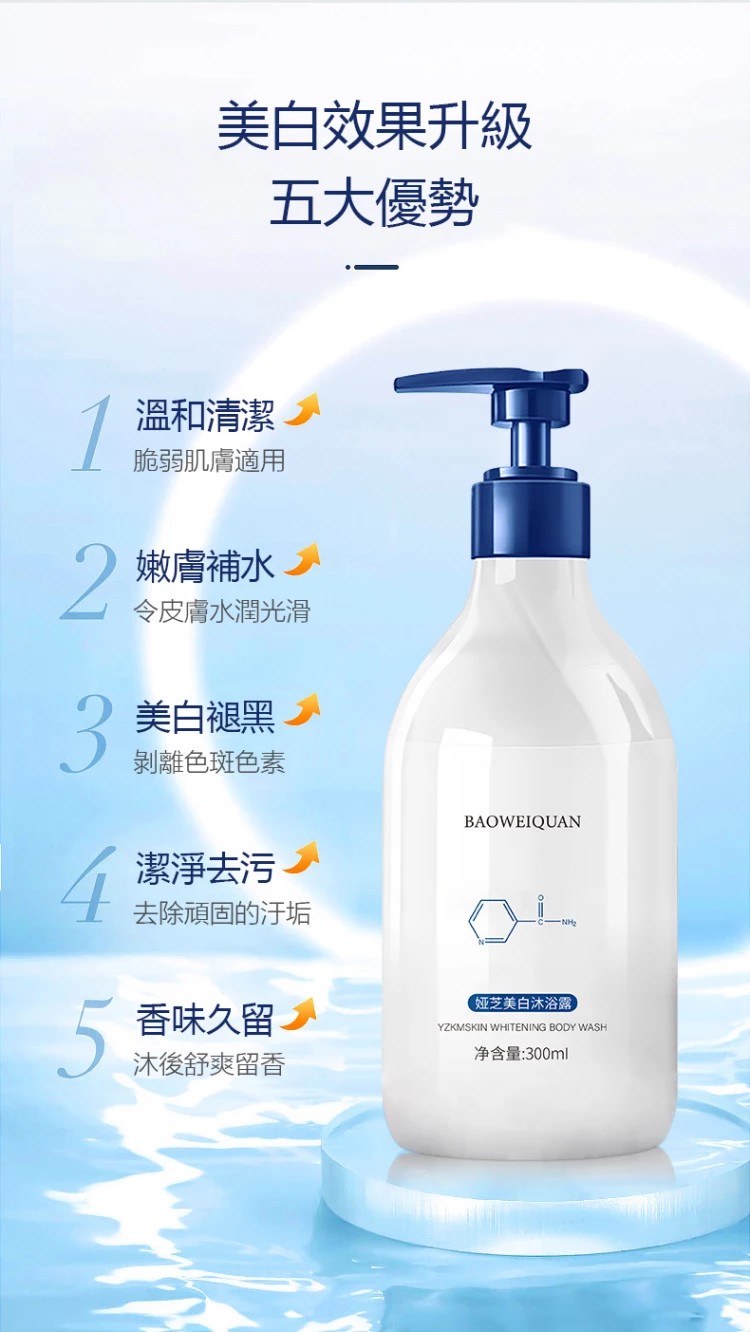 25分鐘前#3瓶養成冷白皮#【日本熱銷榜NO.1!SPA級煙酰胺美白沐浴露】持久留香/美白溫和無刺激 改善粗糙身體 深層清潔無殘留 漂亮MM必備~!【現在下單還贈送小禮品噢~】 - #夠用一整年# NT$1098【六組入】(均價183/組)