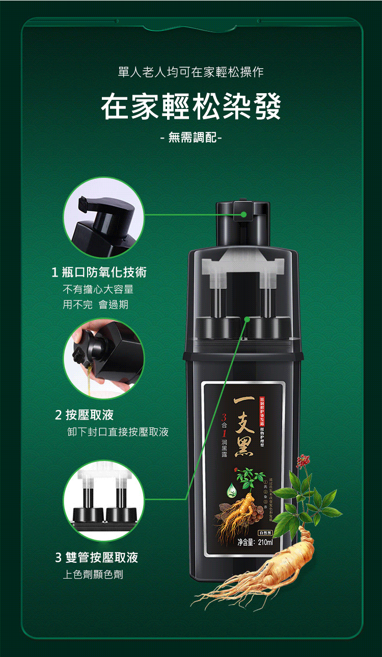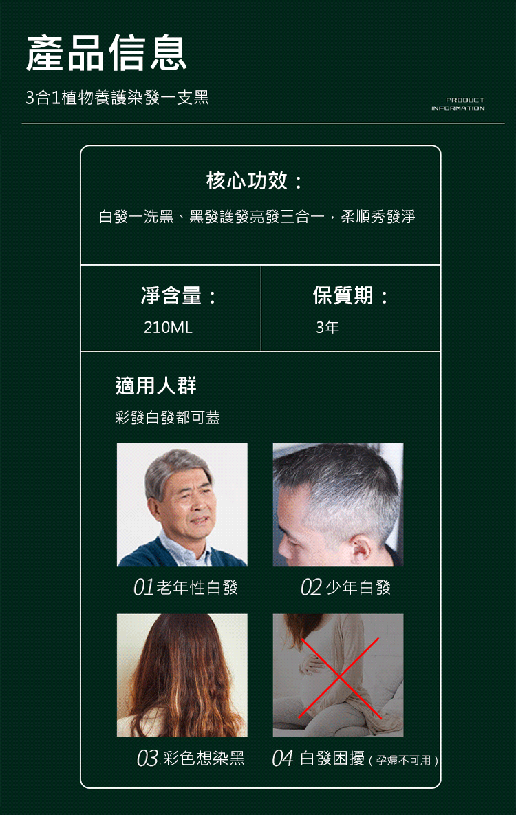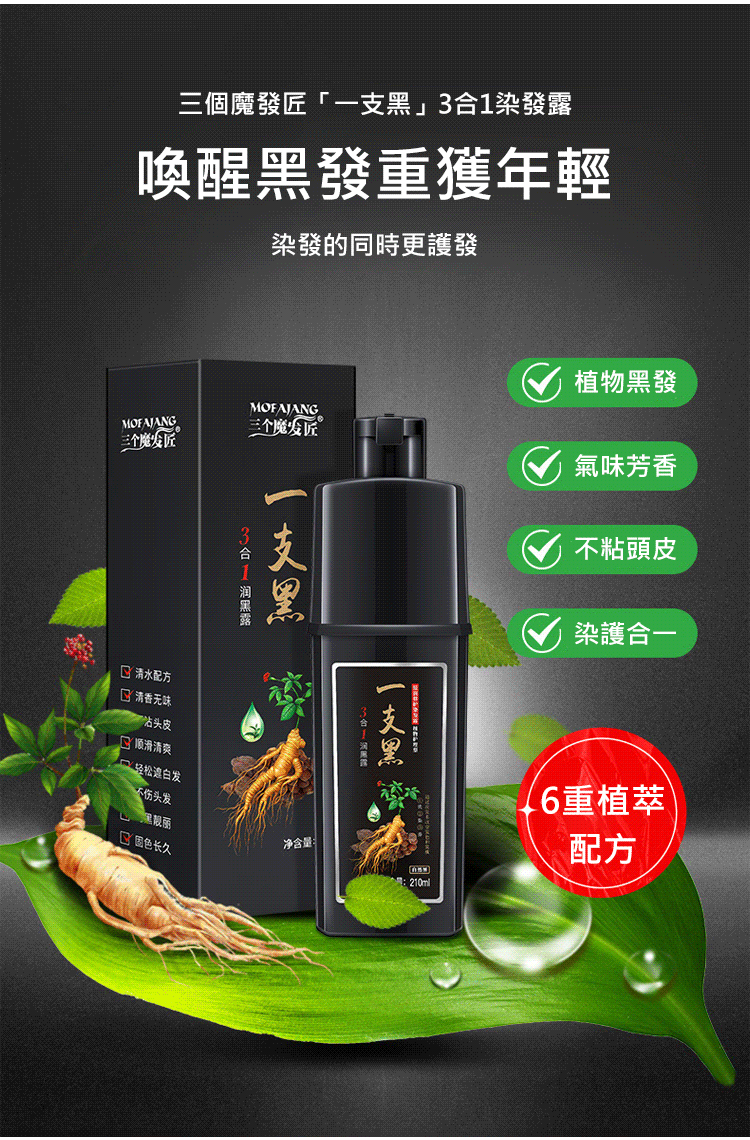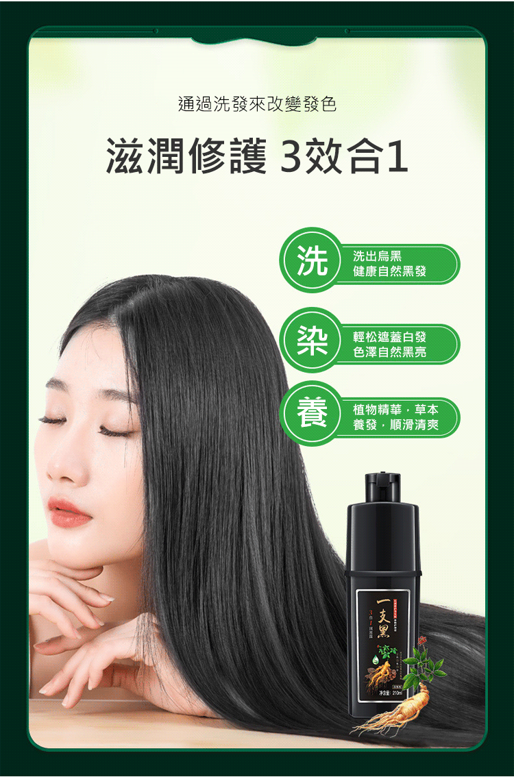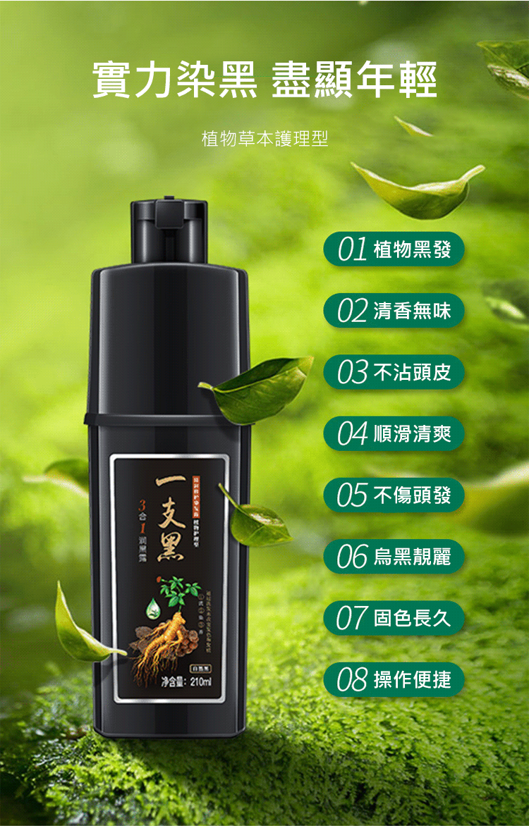 3合1植物養護染髮一支黑